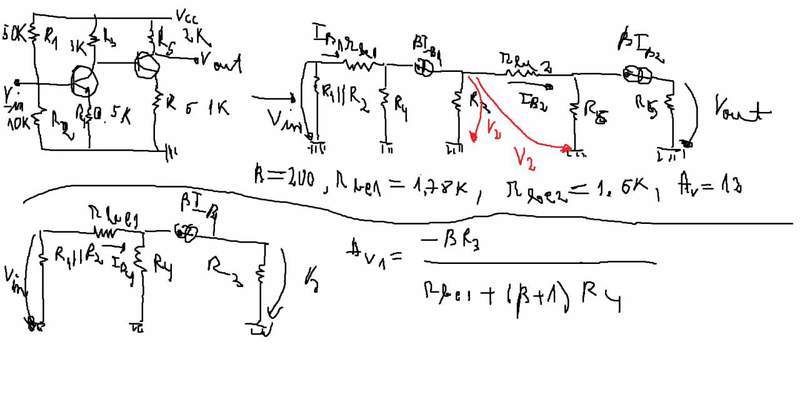- Another participant suggests that the gain can be approximated using the formula (R3//R2)(R5/R6) under the assumption of infinite beta and negligible r_be.