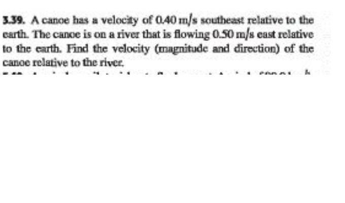 x = 0.50 m/s y = (0.40 m/s)/sqrt (2) east and (0.40 m/s)/sqrt (2) south,