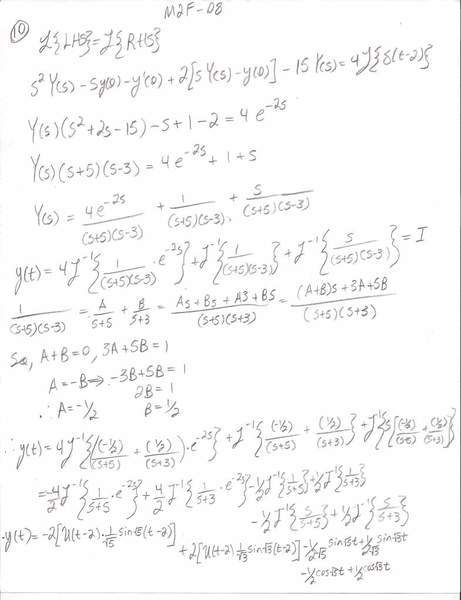 y^{''} + 2y^{'} - 15y = 4\delta(t-2), \quad y(0) = 1, \quad y'(0) = -1.