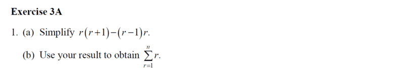 - Simplify ##r(r+1)-(r-1)r## and use your result to obtain ## \sum_{r=1}^n r##