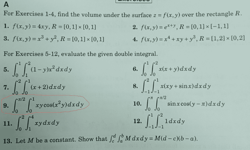 $$\int_0^1 xy \cos (x^2y) dx$$