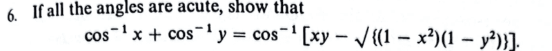 ##\cos^{-1} [xy - \sqrt{(1-x^2)(1-y^2)}]= \cos^{-1}[ xy - \sqrt{(y^2) ⋅(x^2)}]##