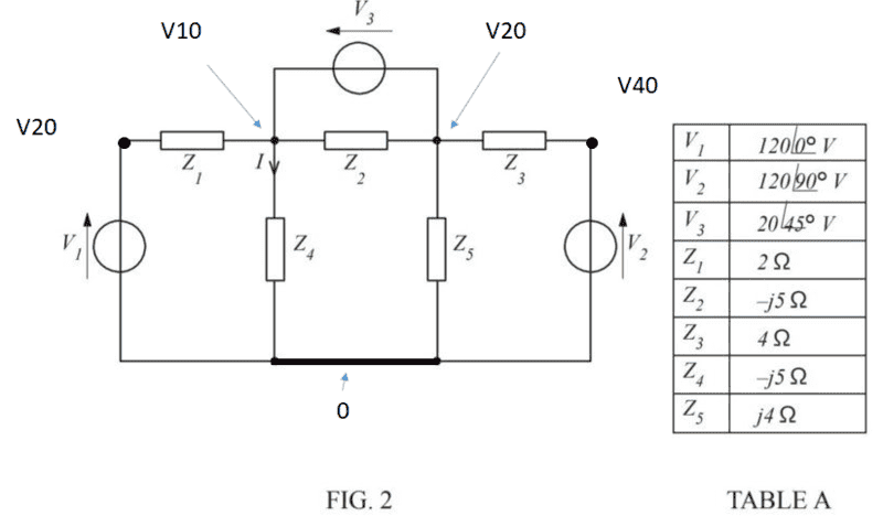(V1-V20/Z1)+(0-V20/Z4)+(-(V20-V3/Z5)+(V2-(V20-V3/Z3)=0