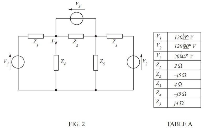 Determine, Using the values given in TABLE A, the current I in the circuit of figure 2 by