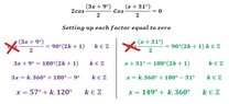 Some participants note the importance of specifying whether angles are in degrees or radians, which may affect the interpretation of the solutions. There are also indications of missing assumptions regarding the periodic nature of the solutions.