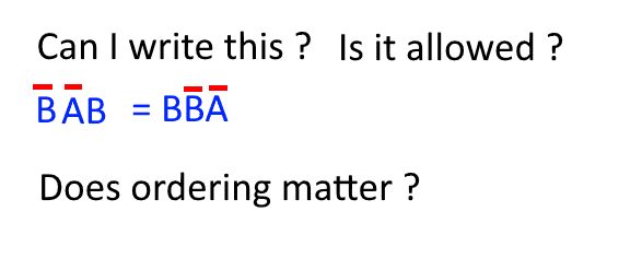 - There is a discussion about the commutative property of Boolean operations, with one participant confirming that rearranging terms is permissible.