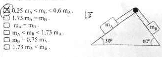There's two blocks of mass m_{A} and m_{B} which are linked by an ideal string. The block of mass A descends at constant speed. There's no friction. If the pulley is ideal, which one of the following is true[/B]