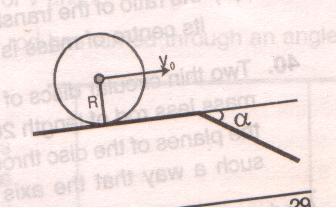 A uniform solid cylinder of radius R=15 cm rolls over a horizontal plane passing into an inclined plane forming an angle \alpha=30o with the horizontal. Find the maximum value of the velocity vo which still permits the cylinder to roll onto the inclined plane section without a jump. the sliding is assumed to be absent.