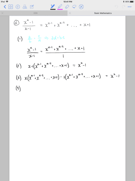 $$\frac{x^n-1}{x-1}=x^{n-1}+x^{n-2}+...+x+1$$