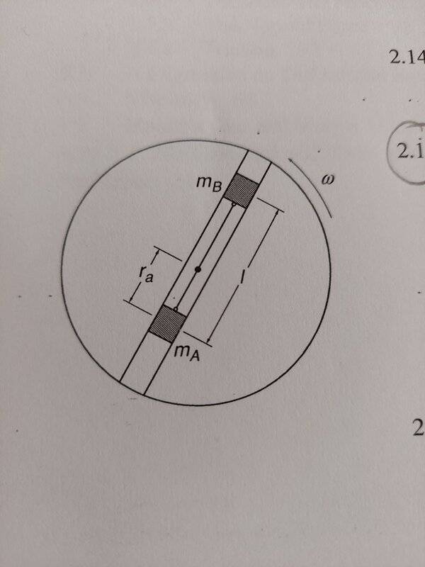 r(A)*ω^2 [m(A)+m(B)] - m(B)*l*ω^2= r''(A) {m(A)-m(B)}