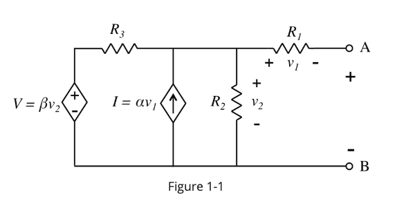 - A linear circuit containing two voltage dependent sources, as shown. The elements in this circuit have the following values: ##R_1 = 7.2k## Ohms, ##R_2 = 12k## Ohms, ##R_3 = 3.3k## Ohms, ##\alpha = 0.025## A/V and ##\beta = 5##.