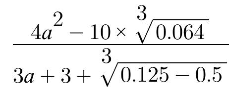 The discussion revolves around solving a cubic root algebra problem involving the expression $$\frac{4a^2-10\times\sqrt[3]{0.064}}{3a+3+\sqrt[3]{0.125}-0.5}.$$ Participants express confusion regarding the value of 'a', specifically that it should not be -1, and question the validity of the equation due to a potential typo. The correct evaluation of the cubic root is critical for arriving at the right answer.