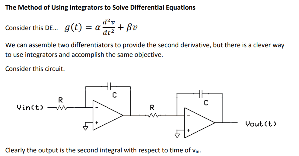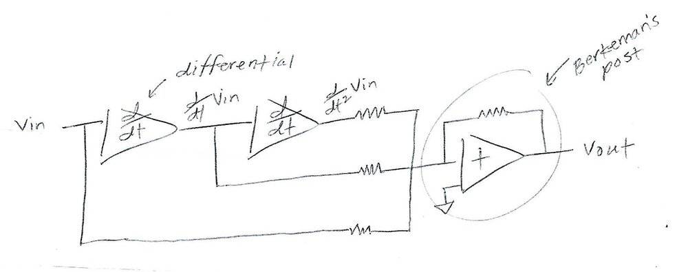 - Another participant suggests that to include the term ##\frac{d^2v_{in}}{dt^2}## in the differential equation, two chained op-amps may be necessary.