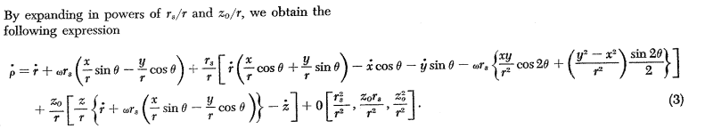 - A later reply provides a mathematical expression involving derivatives and suggests that the differentiation of the equation ##\rho^2 = a^2 + b^2 + c^2## leads to a specific form, while also introducing the approximation ##r_s / r << 1## for further analysis.
