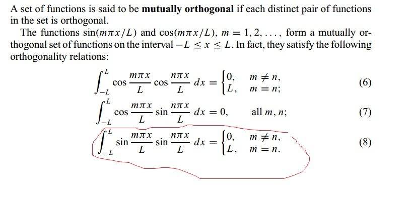 is it not true, that since the terms in the sum are mutually orthogonal, we will no longer have anything within the sum when it is integrated from -2 to 2?