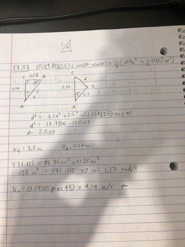 The discussion centers on calculating the angular velocity at point A in a physics problem involving angular motion. The user initially calculated the angular velocity correctly but misapplied the cosine function, using cos(45) instead of the required cos(30) for the given angle of theta = 45 degrees. The confusion arises from the relationship between the angle and the corresponding cosine value needed for the calculation. The request for clearer work presentation using LaTeX indicates a need for better communication of mathematical processes.