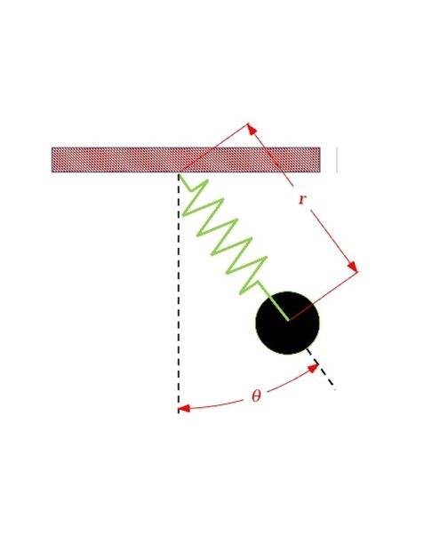$$ m \ddot r = mg \cos \theta -k\left( r - l_o \right) + mr {\dot \theta}^2 \tag{2}$$