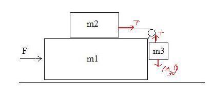 The first part of the question is to find the force F so that m2 will be in rest (in respect to m3).