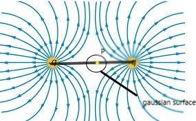 - Participants examine the choice of Gaussian surfaces and their implications on the surface integral of the electric field. Questions arise about the nature of electric field lines and their behavior at point P, particularly regarding symmetry and the absence of charge at that location.