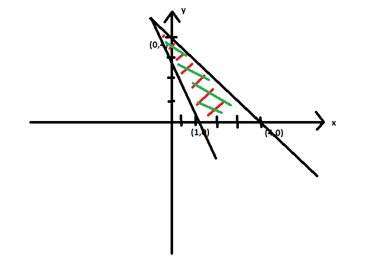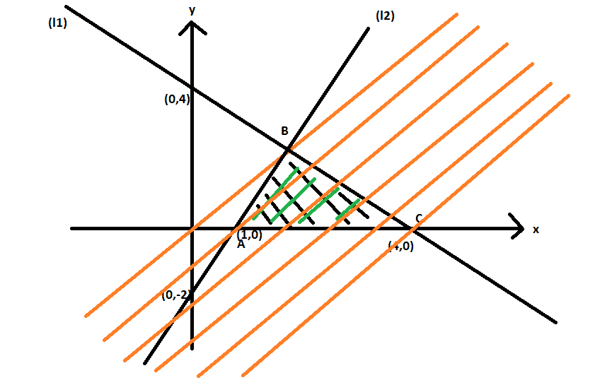 $$(\ell_1) x+y=4 \\ (\ell_2) 2x-y=2 \\ (\ell_3) x=0 \\ (\ell_4) y=0$$