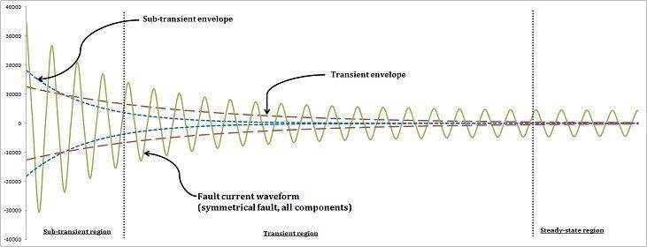 is caused by the damper windings of synchronous machines. The time constant of the subtransient current is denoted by T” and it can be determined from the slope.