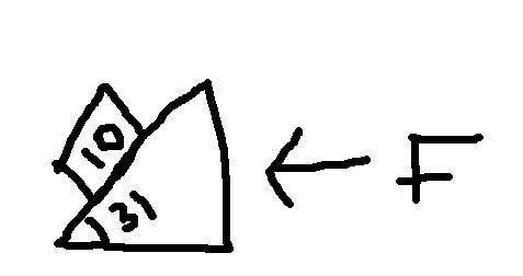 What is the force that has to be exerted on the incline so the 10kg block does not move up or down (aka is in equilibrium). The force is directed so that the incline is pushed to the left.