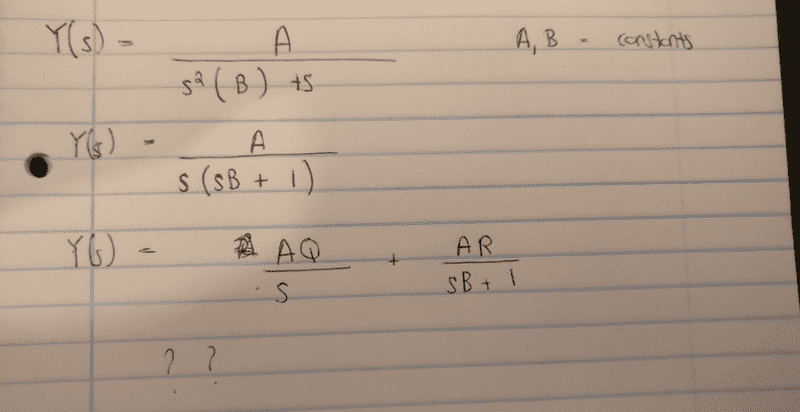 - Participants discuss the form of the expression Y(s) and the need to express it in terms of partial fractions. There are questions about how to correctly compare the numerators to determine the constants Q and R.