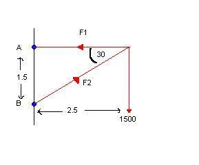 taking moments about B: (F1 x 1.5) = (1500 x 2.5)