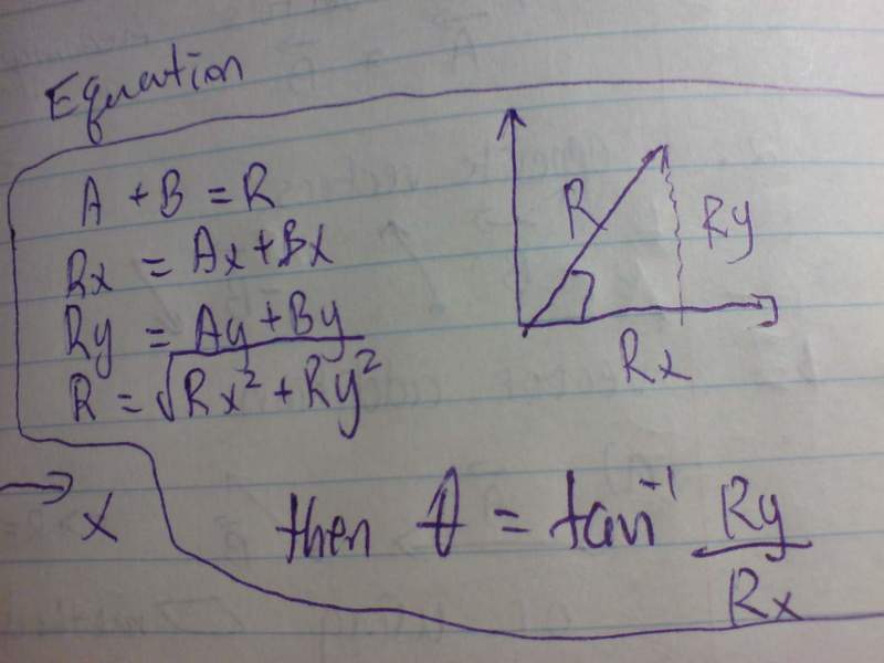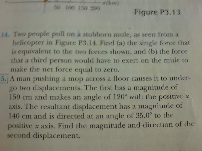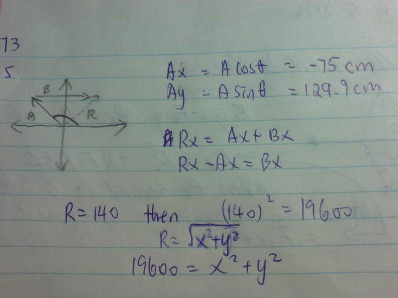 by the way, the answer is 196cm at 14.7 degree below x-axis