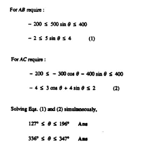 I tried to solve this set of simultaneous inequalities by multiplying (1) by 4, multiplying (2) by -5, and adding them together. My thought was that this would cancel the sin(θ) component and allow me to solve for the range of allowable angles. It did not seem to work.