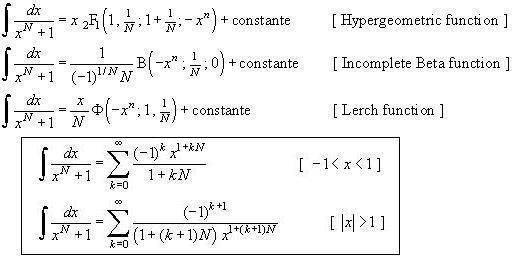 in order to find a primitive of 1/((x^N)+1), let t=x^N and z = y/x