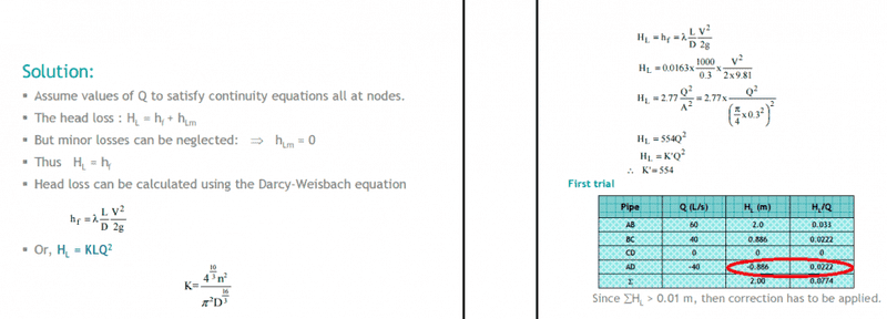Participants are navigating the complexities of the Hardy Cross method and its assumptions, particularly regarding the signs of flow rates and head loss. The original poster's inquiry suggests a potential misunderstanding of the mathematical relationships involved.