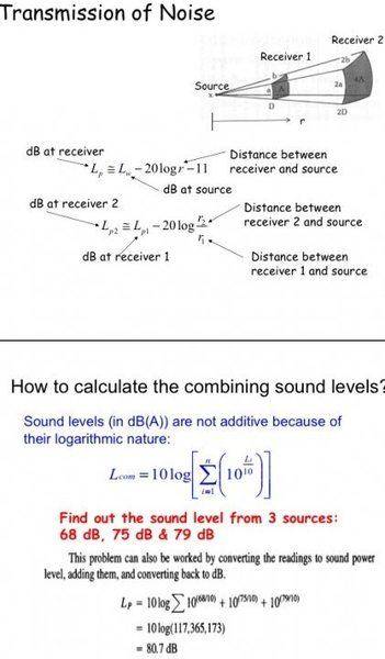 - Some participants clarify that sound levels are logarithmic and that intensities should be summed before converting back to dB.
