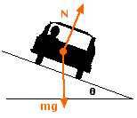 An engineer wishes to design a curved exit ramp for a toll road in such a way that a car will not have to rely on friction to round the curve without skidding. She does so by banking the road in such a way that the force causing the centripetal acceleration will be supplied by the circular path.