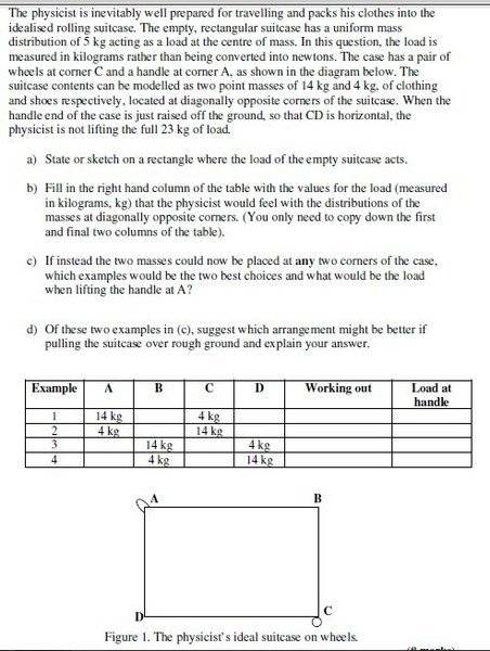 Regarding part (c) (i), as we know that we can consider any of the convenient point as our pivot. If I consider the point where the 5kg mass (center of mass of the bag) acts, the asnwer turns out to be wrong. The correct answer has 4kg mass as pivot