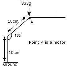 The picture shows a robot leg, assuming the rest of the leg joins onto something rigid, I need to calculate the torque the motor is required to have to resist the 333g making it collapse.