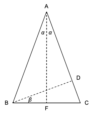 AFBBDC we have ##BD = BC \cos(\beta).##- It follows that ##AB \sin(2\alpha)=BC \cos(\beta).##