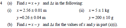 In part (ii), since the value for y is smaller than the uncertainty in x, the value of s is equal to the value of x.