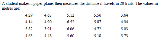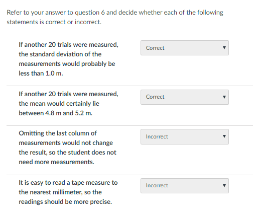 I answered true to this, because I calculated the mean to be about 5.04m. Since this is between 4.8m and 5.2m I concluded that this should not change much with more measurements, provided they are not wildly different. Therefore, I answered true.