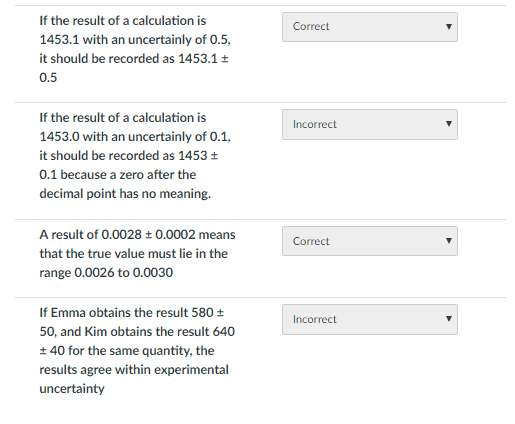 If the result of a calculation is 1453.1 with an uncertainly of 0.5, it should be recorded as 1453.1 ± 0.5