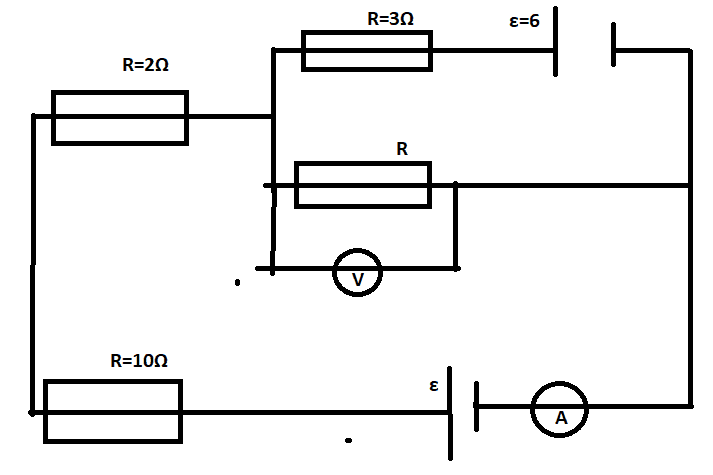 The discussion revolves around applying Kirchhoff's laws to a circuit problem involving an ammeter reading of 2A and a voltmeter reading of 5V. Participants are tasked with finding unknown values of ε and R based on the provided circuit parameters.