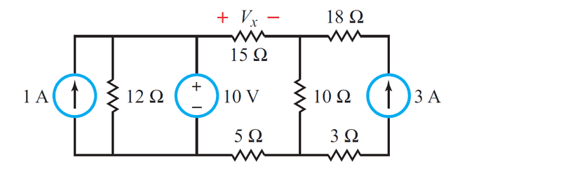 (c) Vx’’’ , the component of Vx due to the 3 A current source alone.