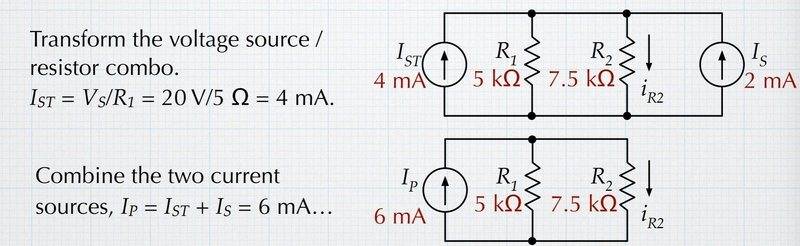 I was working on a the source transformation and i got to the part where there are two current sources in the circuit. The current sources were added together (giving they were going in the same direction). This is the part that confused me.