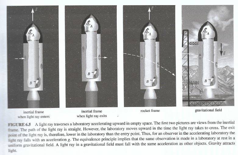 I have now several times come across the situation where the equivalence principle is used to explain why a gravitational field bends light. Here is a very clear presentation of the situation from Hartle: