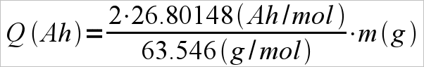 I haven't done any advanced electrochemistry yet so I only now discovered how Faraday's law can be used. I rearranged it (see the attached png) and used Faraday's constant [url=http://www48.wolframalpha.com/input/?i=Faraday%27s+constant+in+amp-hours+per+mole[/URL] instead.