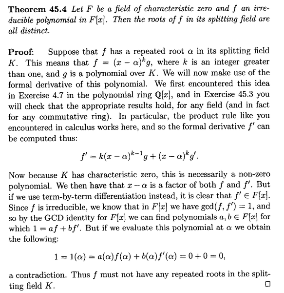 My questions on the above proof are as follows:Question 1In the above text from Anderson and Feil we read the following:"... ... This means that ##f = ( x - \alpha)^k g##, where ##k## is an integer greater than ##1## and ##g## is a polynomial over ##K## ... ... Since ##f## is in ##F[x]## ... that is ##f## is over ##F## ... shouldn't ##g## be over ##F## not ##K##?