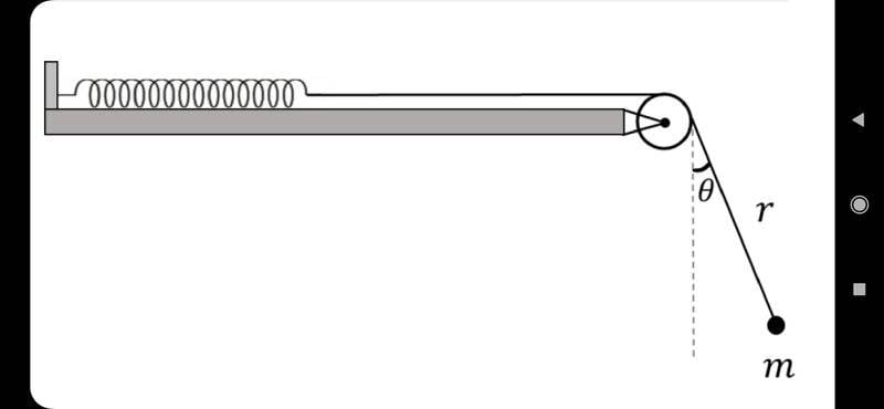 I'm stuck in a problem of a spring mass system with a pendulum attached to it as showed in the figure below: