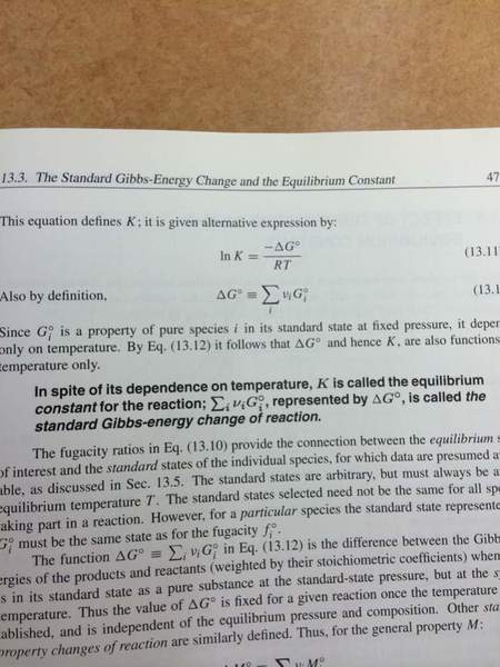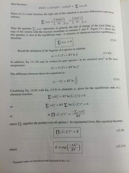 I am working on deriving the expression relating the equilibrium constant K to the change in Gibbs energy.
