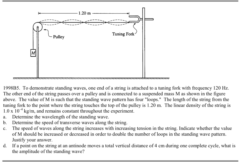 First of all, I am not entirely sure what the problem means by "loops." (I see the loops, duh ;)) but I am not sure what quantity they represent. I am guessing it means harmonics, in which case M would have to be lessened to make a greater wavelength. This is because the extension of the string would be lessened as it is less taut. In the relation L = 1/2λ+nλ/2 (4th harmonic for strings), we see that the dividend is