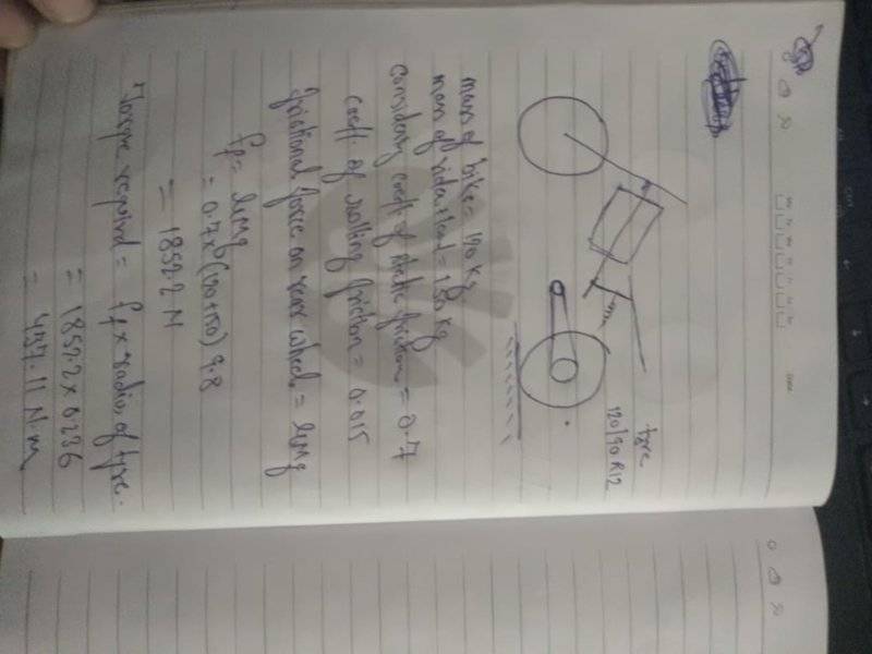 - One participant seeks to determine the starting torque needed to move a motorcycle weighing 120 kg with an additional load of 150 kg.